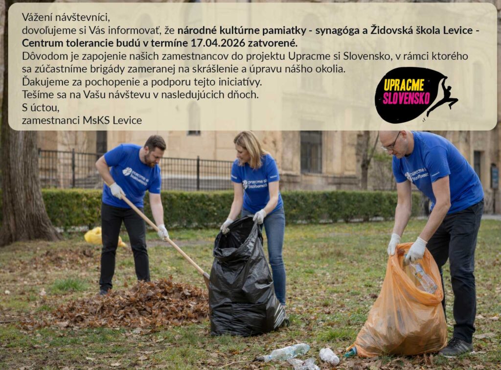 23.4.2026 o 16:00 hod. v Židovskej škole – Centre tolerancie Levice